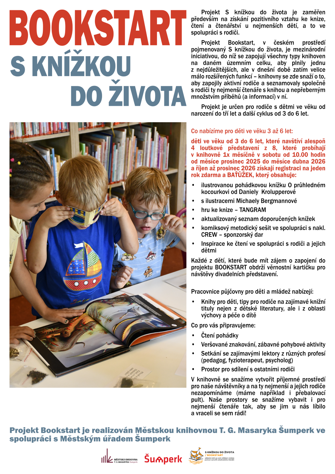 Projekt Bookstart je realizován Městskou knihovnou T. G. Masaryka Šumperk ve spolupráci s Městským úřadem Šumperk
